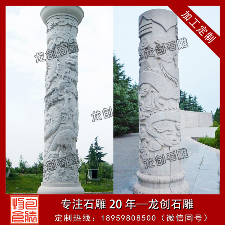 一般情況下,高度6米,直徑0.8m,材質選擇白石,采用圓浮雕結合的雕刻工藝,價格在2萬元左右一根;規格尺寸和選用的材質不變,但是采用浮雕和鏤雕結合的雕刻工藝,價格在4萬元左右一根。如果采用透雕工藝價格就更貴了。
