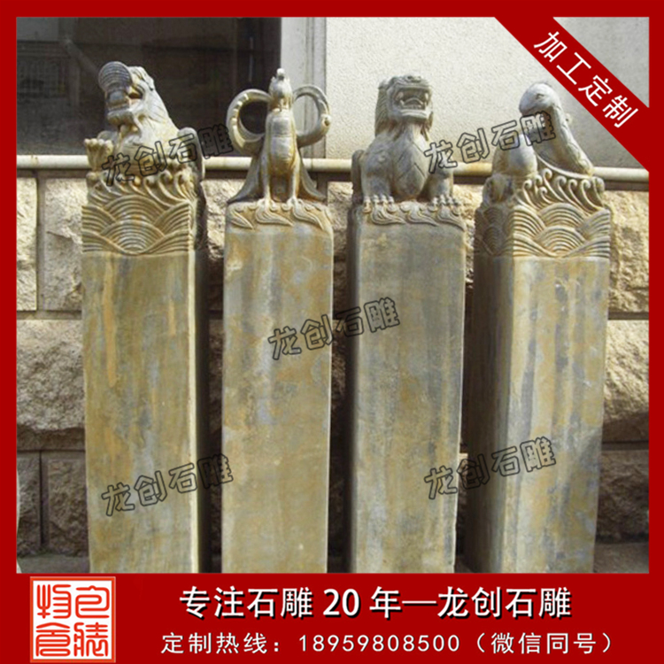 十二生肖的等等。根據(jù)其這一特性人們還賦予它不同的名字,像“獅子拴馬樁”、“生肖拴馬樁”等等。