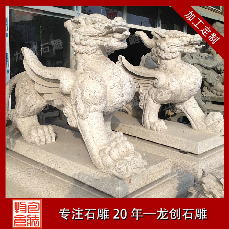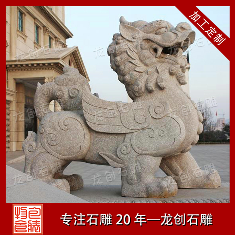 石雕貔貅是中國古代神話傳說之產物,作為祥瑞文化的代表性符號之一,其造型形態從出現到現在,經歷了漫長的歷史更替,在中國大地上歷劫不衰,形成具有民族特色,而且深入民心,群眾基礎極為深廣的藝術形態。在數千年的風雨歷程中,石雕貔貅集眾多審美需求于一體,,形式日臻完善,不僅具有豐厚的民族文化積淀,凝聚著中華民族的造物智慧,彰顯出獨特的藝術審美特征,成為中國民間傳統文化與現代文明相互融合的具有典型性的造型形態符號,以蓬勃旺盛的生命力,昂首挺胸地步入信息時代。