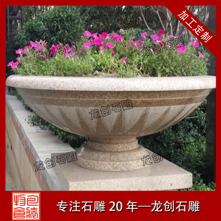 石雕花盆為什么那么受人們喜愛呢?石雕花盆擺放有哪些作用呢?原因就是石雕花盆不僅能靈活移動,操作方便,還有很好的裝飾效果。石雕花盆質(zhì)地堅硬致密、強度高、抗風化、耐侵蝕、耐磨損、吸水性低,鮮明的色澤還能保存百年以上,顏色美觀。 石雕花盆作為新型的花卉應用形式,擁有其它花盆無法達到的特定優(yōu)勢,與花壇相比,石雕花盆靈活,大部分都可以移動。