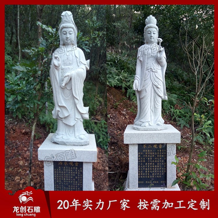 觀音菩薩像在制作上有千般面相,具體有三十三化身,而觀世音菩薩石像的造型都是從這三十三種變化而來(lái),又稱為三十三觀音。在人們的心目中,她與普通百姓很貼近,是解危救難的救星,慈祥的女神,美好的化身,高潔的圣母。