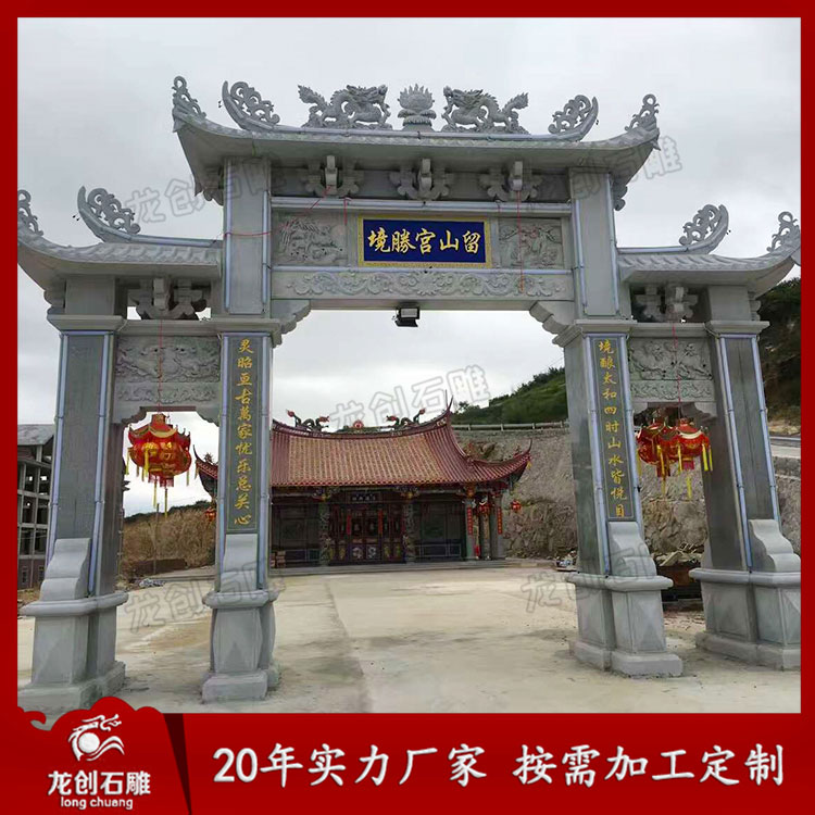 2、看材料,花崗巖石牌坊價格相對于青石牌坊低一點,也低不太多,石雕牌坊主要受石材的限制,惠安石材無輻射所以這幾年深受歡迎。