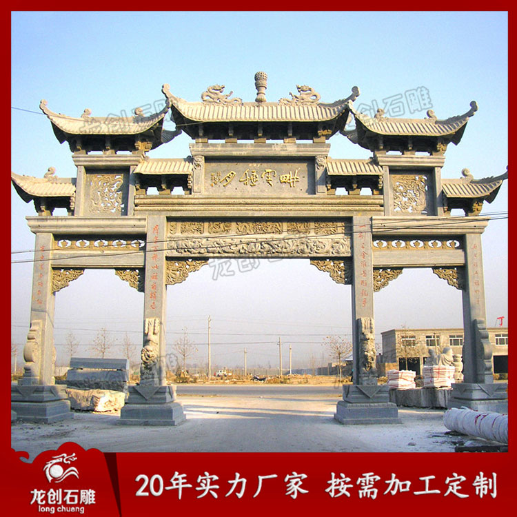 一是鄉(xiāng)鎮(zhèn)路口石雕牌坊充當了門面擔當?shù)淖饔?,而且在新農(nóng)村的氛圍下,石牌坊越氣派越說明該農(nóng)村發(fā)展的越好;