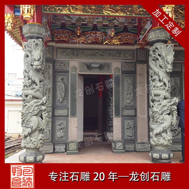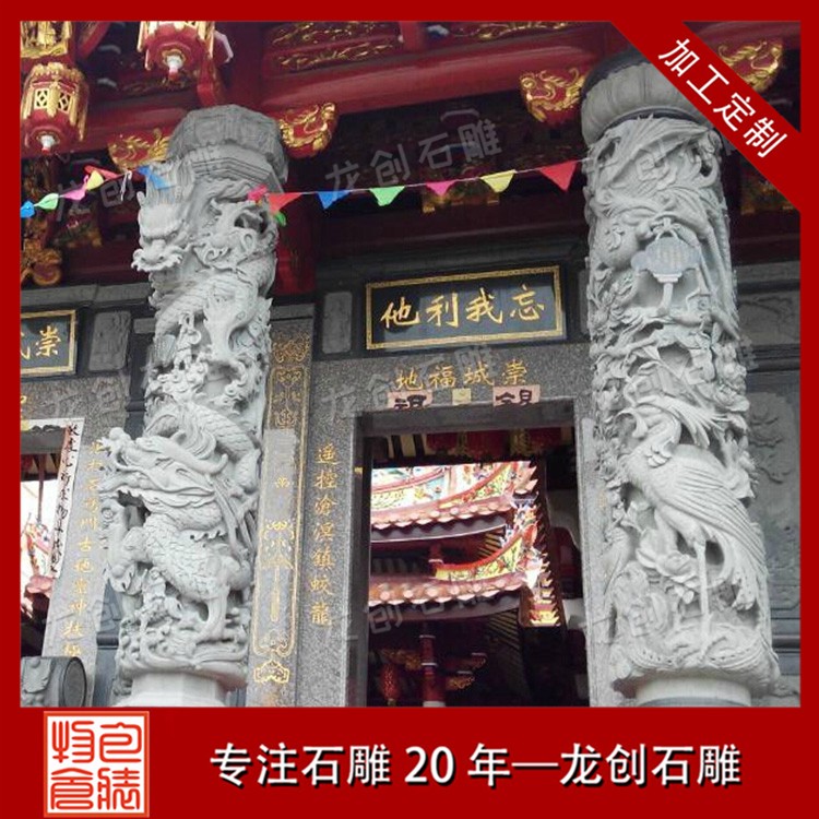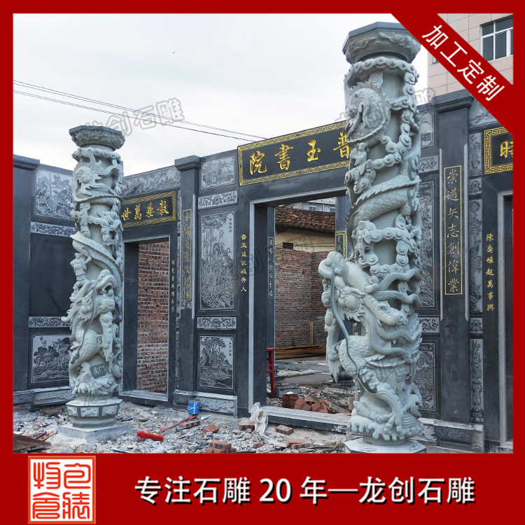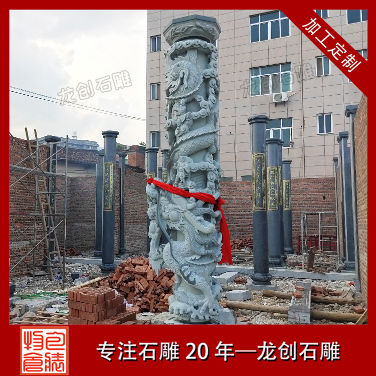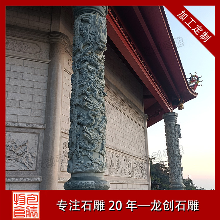 1.青石龍柱。青石的顏色莊嚴(yán)、肅穆、穩(wěn)重,青色更接近古舊的色彩,所以人們看到青石加工出來的石材龍柱往往會(huì)有一種回到過去的感覺。青石的硬度介于花崗巖和玄武巖之間,與花崗巖相比結(jié)構(gòu)更加穩(wěn)固些,青石雕刻出來的龍柱可以保持長期使用而依然美觀,目前青石龍柱的使用會(huì)比較多,主要在寺廟宗祠。