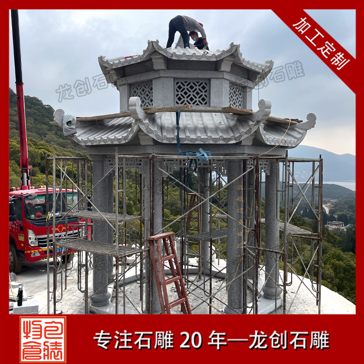 首先,要選擇石材。石涼亭需要的石材質(zhì)地要求較高,一般是選擇花崗巖、石灰?guī)r、大理石等石質(zhì)較硬的材料,因?yàn)檫@些材料可以耐久耐磨,而且不容易受天氣、風(fēng)吹日曝的影響。