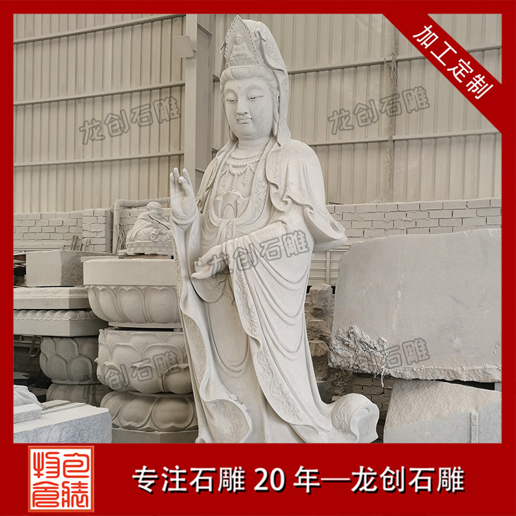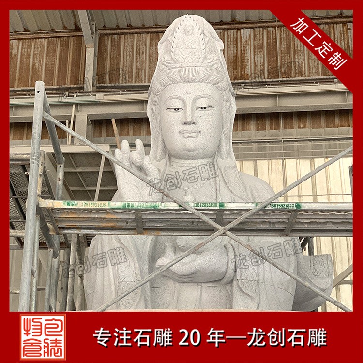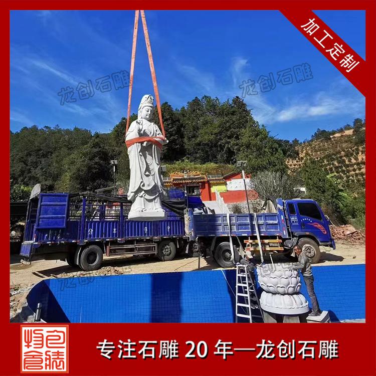 龍創石雕采用半手工半機械的制作工藝,結合匠人的精湛技藝,確保每一尊石雕觀音都能達到藝術效果。雕刻過程中,匠人們需細心觀察石材的紋理與色彩,巧妙利用其自然形態,賦予石雕觀音以生命與靈魂。從輪廓的勾勒到細節的雕琢,每一個步驟都凝聚著匠人的心血與汗水。他們通過手中的刻刀,將觀音菩薩的慈悲與智慧,化作一件件栩栩如生的石雕藝術品,讓觀者無不為之動容。