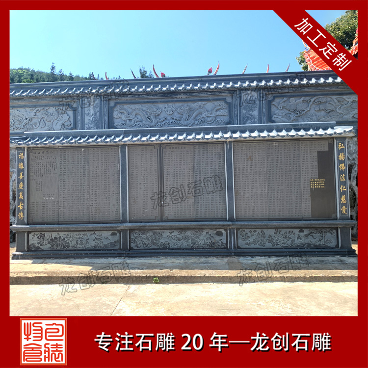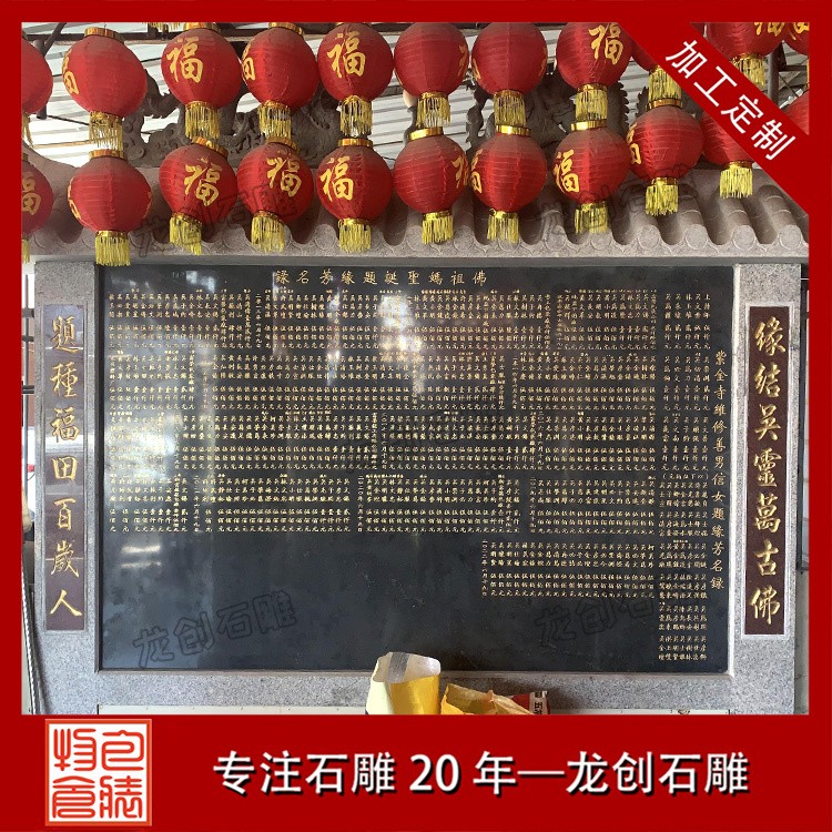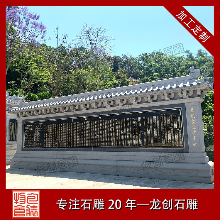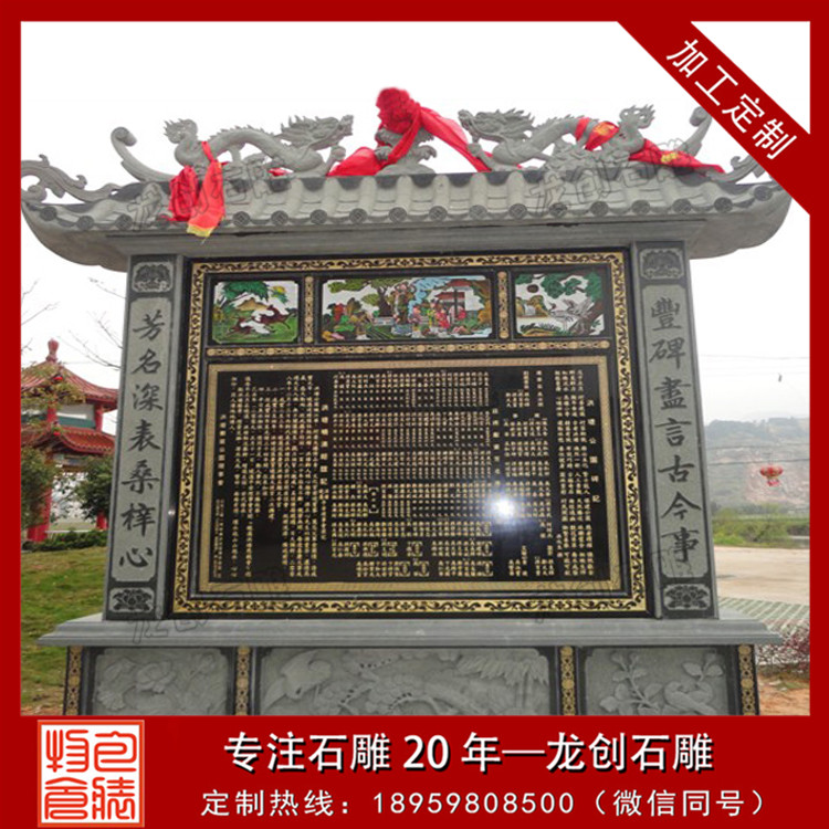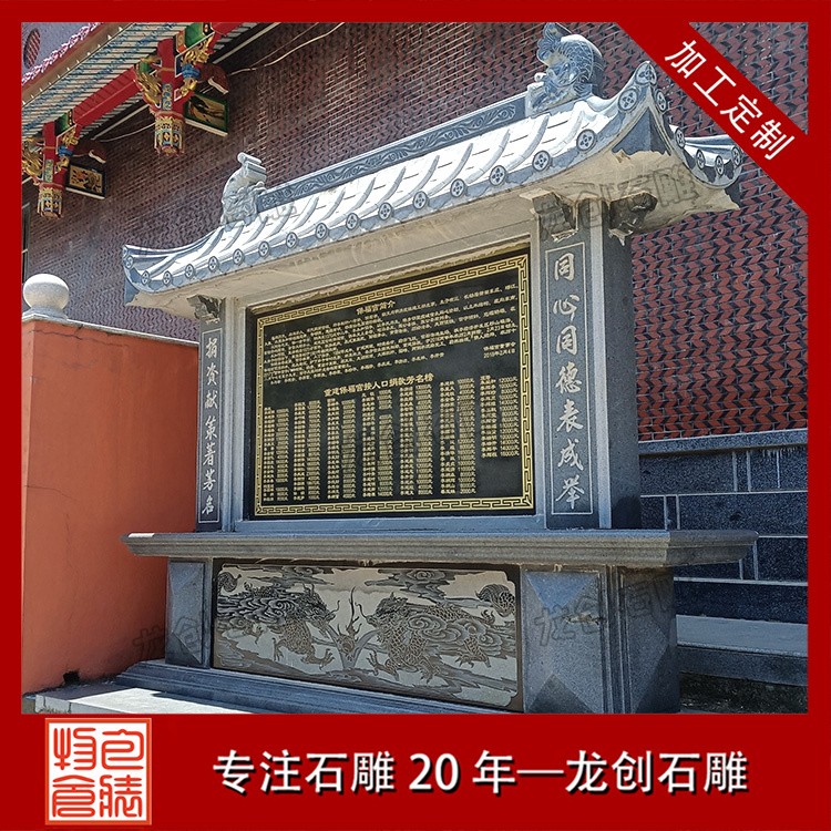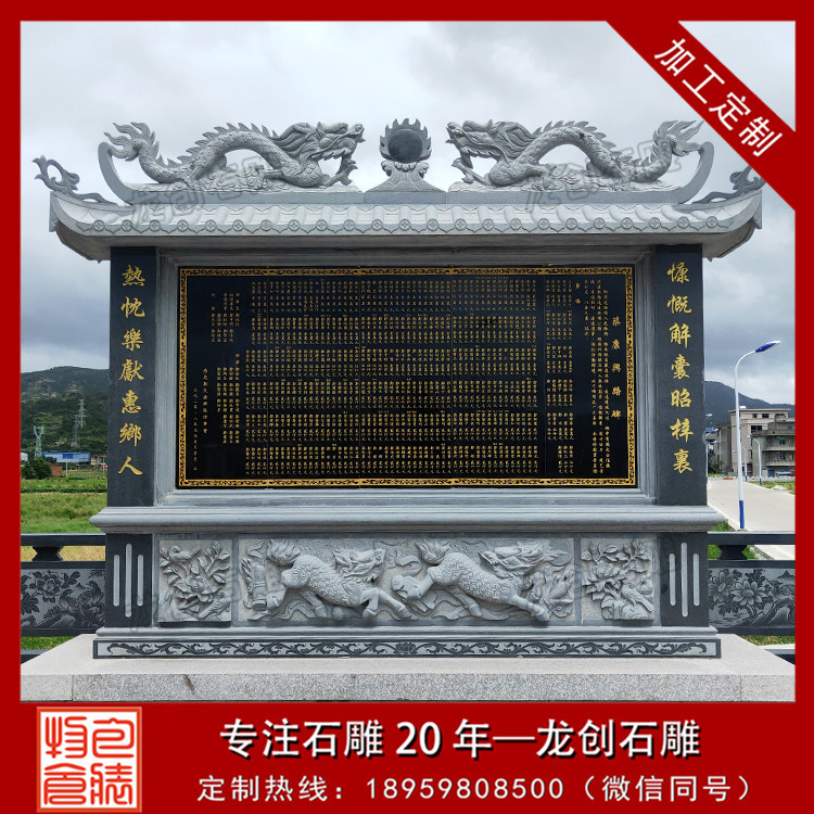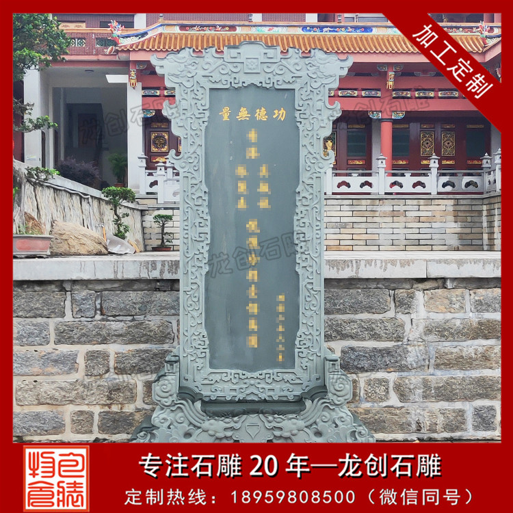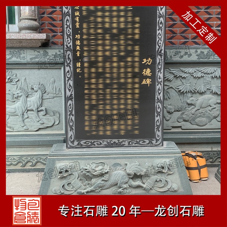 設計特點:通常由一塊長方形的石頭精心雕刻而成,上面刻有詳盡的文字內容,如表彰對象的姓名、事跡、貢獻等,以及相關的圖案或浮雕,以生動形象地展現功德事跡的輝煌與偉大。