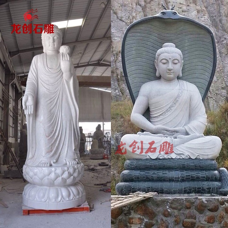 浮雕與線刻:石雕釋迦摩尼佛像常采用浮雕和線刻技法,通過深淺不一的雕刻,使佛像形象更加生動真實。浮雕技法能夠突出佛像的立體感,而線刻則細膩地勾勒出佛像的輪廓和細節,兩者結合使得佛像栩栩如生。