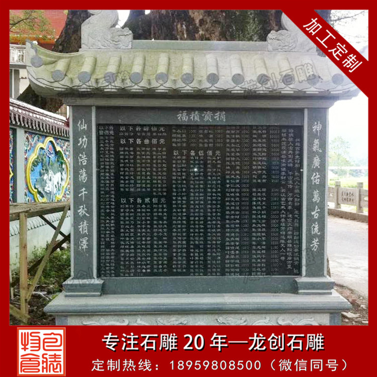 在傳統(tǒng)的中國文化中,祠堂是家族或宗族進(jìn)行祭祀、教育和聚會(huì)的重要場所。而捐資功德碑和芳名碑,則是記錄家族成員捐資助學(xué)或其他社會(huì)公益活動(dòng)的重要形式,具有極高的文化和歷史價(jià)值。今天我們將圍繞“祠堂捐資功德碑芳名碑一般做多大尺寸”這一話題,深度探討其尺寸、設(shè)計(jì)、材料及相關(guān)注意事項(xiàng),以便幫助家族或宗族更好地傳承和表達(dá)文化,促進(jìn)和諧家庭關(guān)系。一個(gè)優(yōu)質(zhì)的捐資功德碑,不僅僅是一塊石碑,它更承載著濃厚的家族情結(jié)和文化印記。