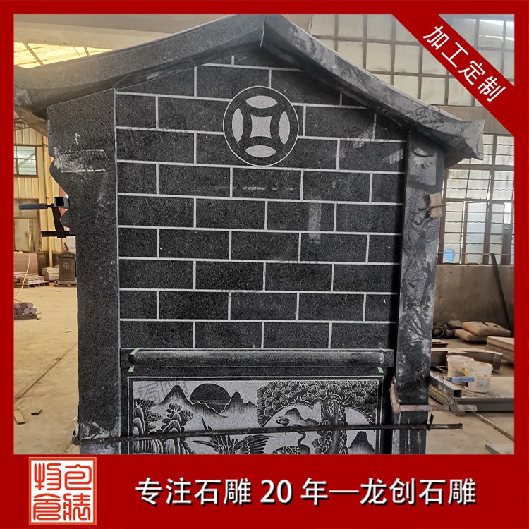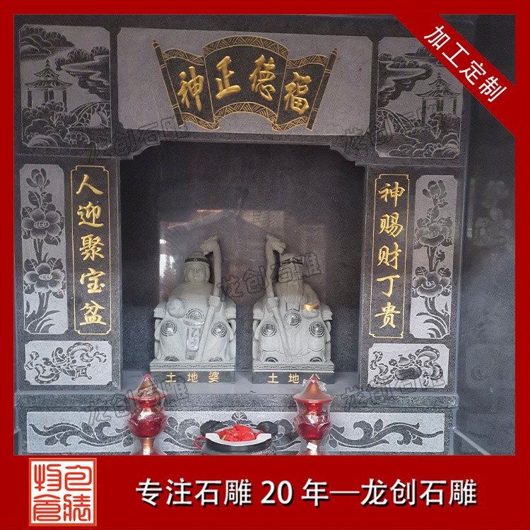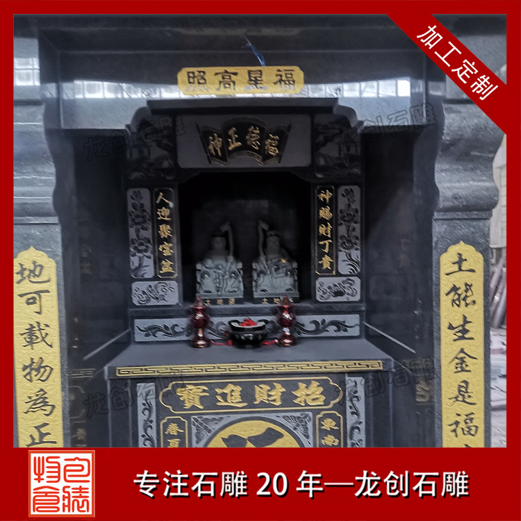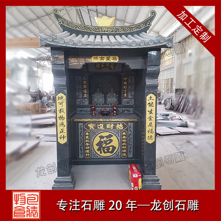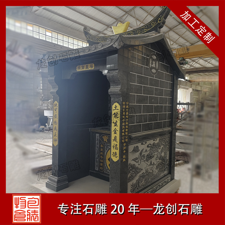在浙江寧波的金蓮寺改造項目中,一座精美的石雕土地廟成為點睛之筆。這座土地廟采用優(yōu)質(zhì)芝麻黑654石材,質(zhì)地堅硬,色澤溫潤。廟身的雕刻工藝精湛絕倫,高2.9米,寬1.36米,深度1.63米,整體造型古樸典雅,遵循傳統(tǒng)廟宇建筑風格,飛檐斗拱線條流暢,比例協(xié)調(diào);墻體厚實,雕紋精美,線條流暢。其內(nèi)部空間布局合理,土地神像安置其中,更顯威嚴。