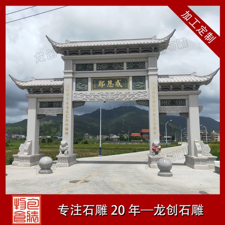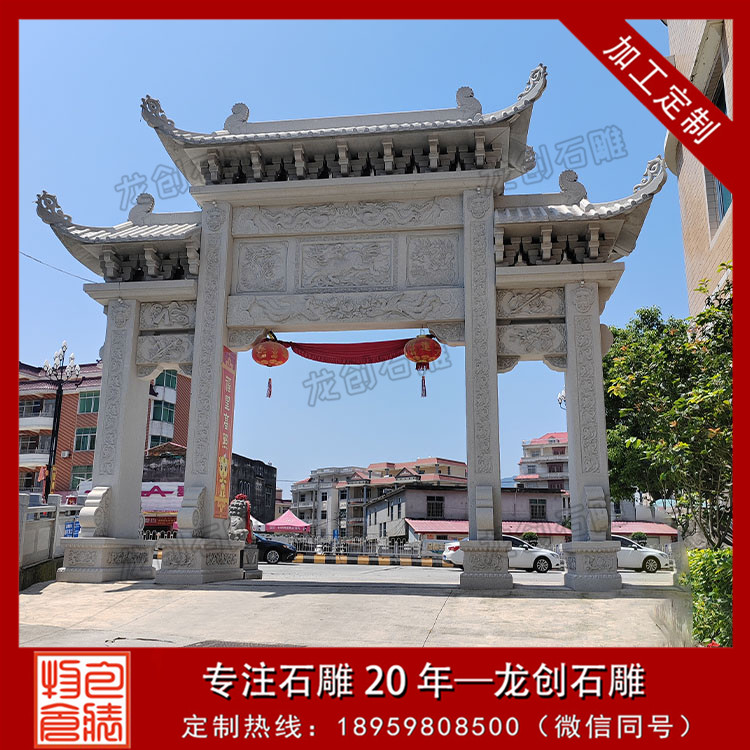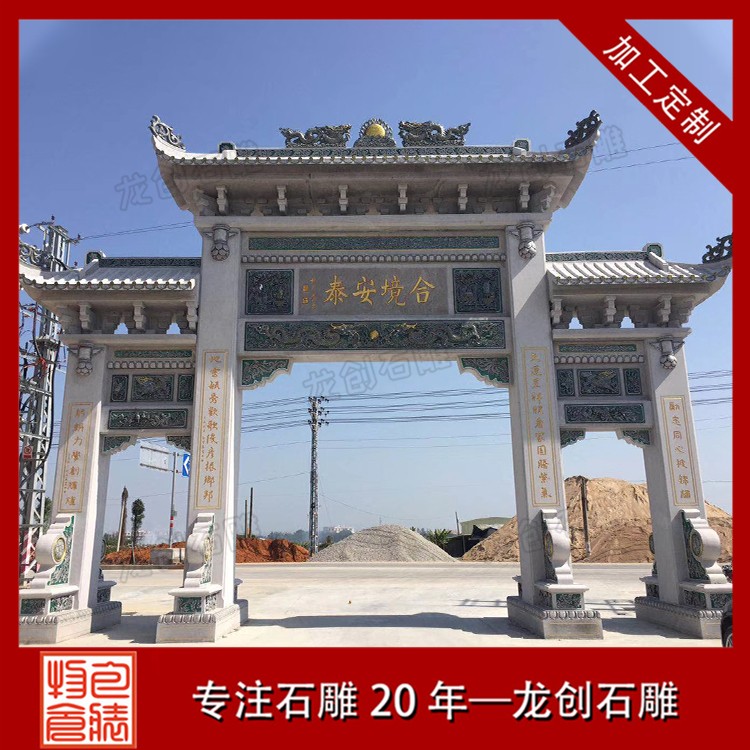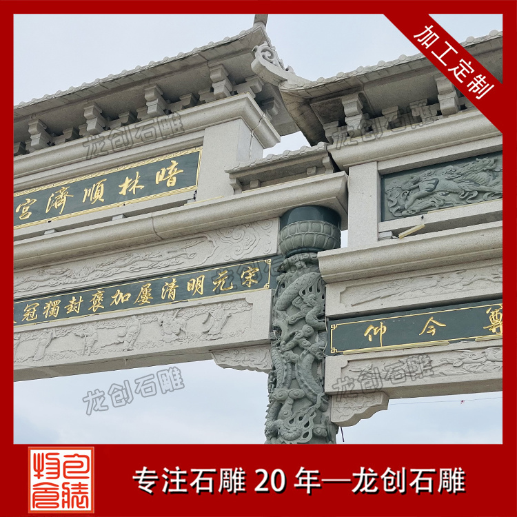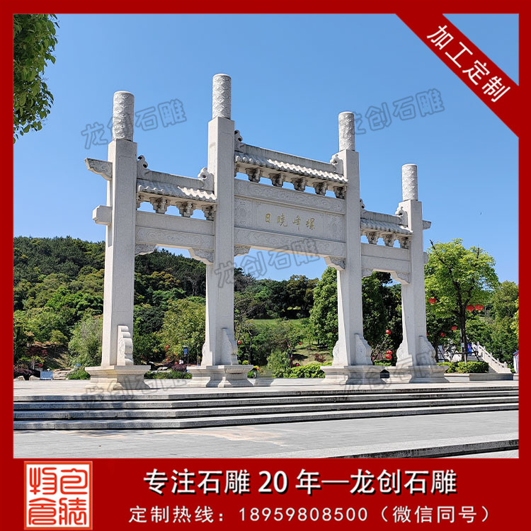 明確用途與風格:首先要明確牌坊的用途,是用于村口標識、景區裝飾,還是寺廟道觀的莊重點綴。不同用途決定了風格的選擇。如村口牌坊宜大氣磅礴,展現村莊風貌;景區牌坊可融入地域特色,與周邊景觀協調;寺廟道觀牌坊則需莊嚴肅穆,體現宗教文化。