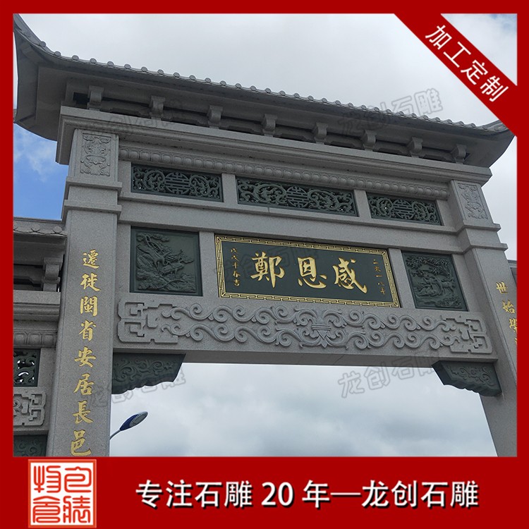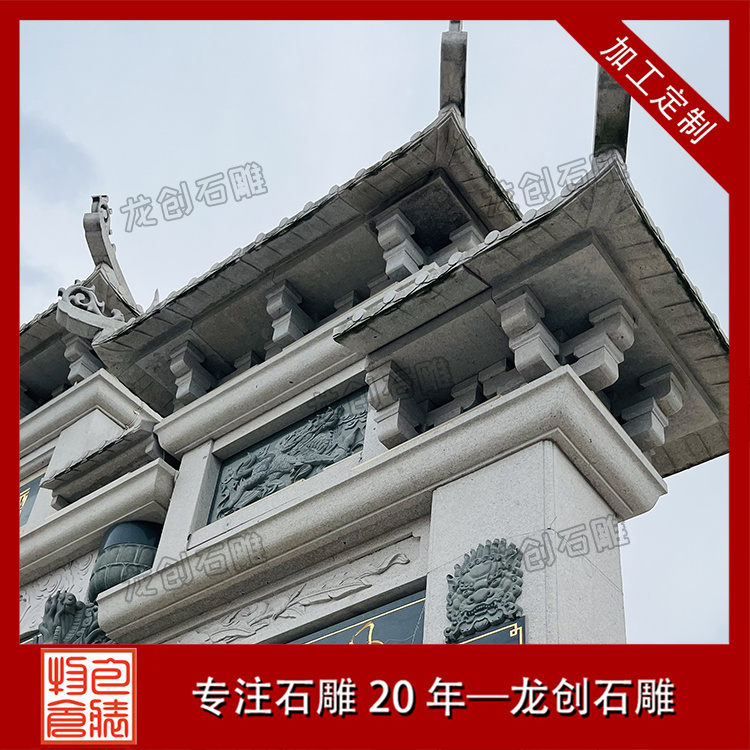 關注雕刻工藝:精湛的雕刻工藝是石雕牌坊的靈魂。觀察圖案線條是否流暢自然,深淺浮雕、透雕等工藝運用是否恰到好處,人物、花鳥等雕刻形象是否栩栩如生。復雜精細的工藝會增加牌坊的藝術價值與成本,要在工藝水平與預算間找到平衡。