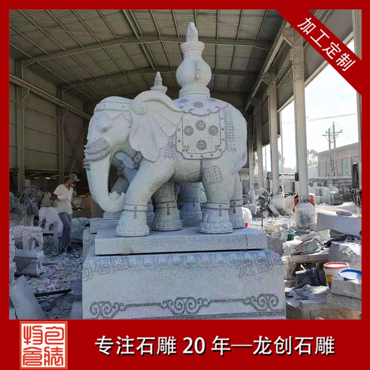 寺廟石雕大象和公司大門口的石雕大象標準都是眼睛傳神,有福相,雕工精美,有一點不同的就是雕刻圖案不一樣,公司大門口擺放的石雕大象一般雕刻福、吉祥、如意、納財送寶等圖案,寺院大門口擺放的大小一般是雕刻寶相紋、經書、蓮花、祥云等圖案。