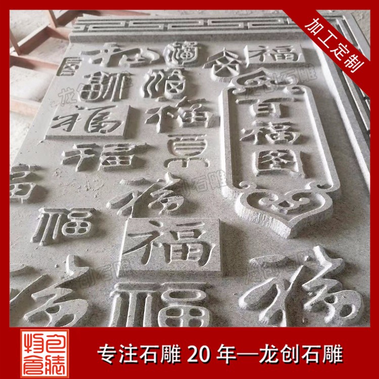 (4)石材浮雕字體:如我們常見的是福字,大都會取吉祥如意的字來雕刻。