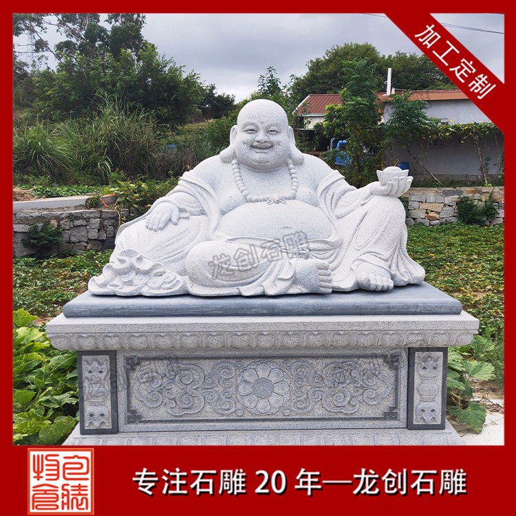 現(xiàn)在人們說到石雕彌勒佛佛像,印象深刻的就是他那張充滿笑容的臉,而這樣的彌勒佛我們稱之為笑口常開彌勒佛,而這種形態(tài)的石雕彌勒佛雕像從漢朝進入中國以來就這樣固定化了,人們用一位胖胖的中年人來寓意彌勒佛,一來是這樣的偉家見能得到人們的喜愛,二來也是因為未來佛的作用就是讓世界充滿歡笑吧,三來也是教導人們凡事都應該用笑去面對未來。