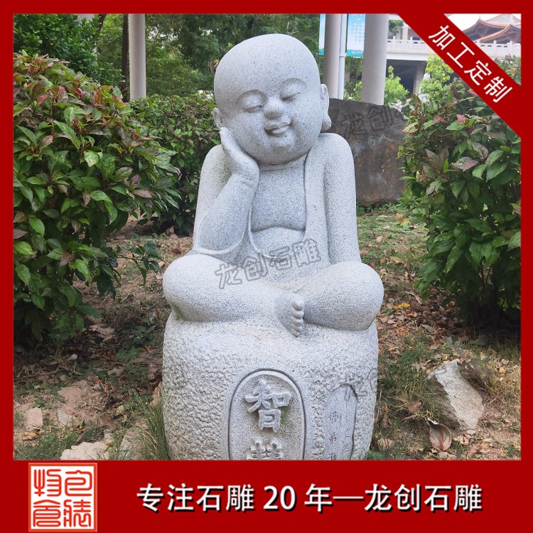 石雕小和尚就是用石頭雕刻制作的小和尚造型,一般都是7歲以上,20歲以下的孩童雕塑。由于小孩的天真爛漫,各種各樣有趣的造型都會做出來,比如下棋的小沙彌,睡姿的小沙彌、嬉戲的以及功夫小沙彌,打掃衛生的等等,也有一些修行的小沙彌造型,比如參禪打坐的造型,敲木魚的造型。石雕小和尚的百態千姿是寺廟諸佛菩薩雕塑里面較多的一種,也是讓信眾們發自內心的喜愛和尊敬的一種佛教弟子塑像。
