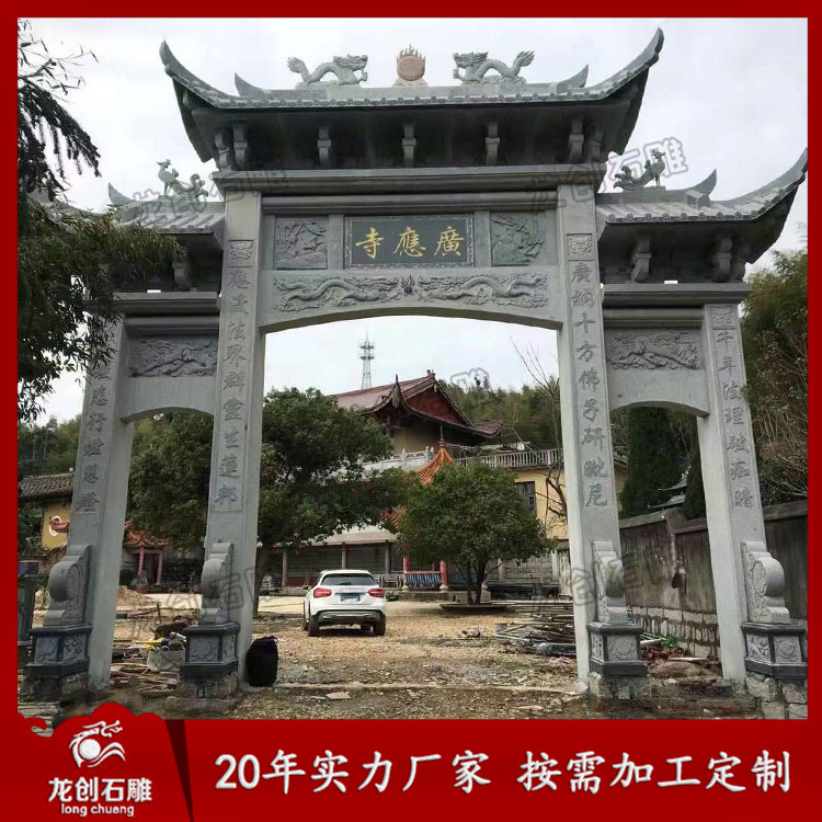 寺廟青石牌坊樣式圖片有一門、三門、五門等,其中有一門一樓、三門三樓、三門五樓等,這些石牌坊是常用的幾種款式,價格也不貴,是消費者較為喜歡的幾種樣式的石牌坊。不同大小的石牌坊價格也不同,石牌坊樣式和規格大小不同,石牌坊價格也不一樣。不同石材,價格也不同。