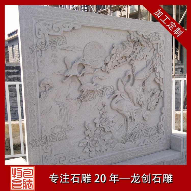 人們總是喜歡寓意好的物品,尤其是年齡大的老人他們更喜歡一些有寓意的東西。例如,石雕浮雕松鶴(松鶴延年)這個寓意就很受他們的喜愛,這也表示著健康、多福多壽的意義。在石雕照壁里面,也有專門雕刻這種圖案的浮雕照壁,有的是放置在墻上有的是放在其他地方。這種浮雕照壁可能看起來沒有那么的有意思,但是它的寓意是很多類型的浮雕都無法比擬。