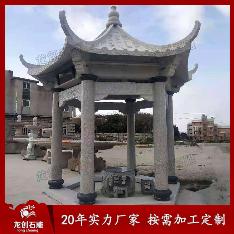 因為石亭子的雕刻工藝不同,加工效果不同,所以整體上的價格也會有一定差異性,所以建議還是應該做好雕刻工藝方面的確認,雕刻樣式和設計也是應該提前來明確好。雕刻工藝過硬,樣式精美的石亭子自然表現力更強,但是價格略高,大家要做好價格比較才行。