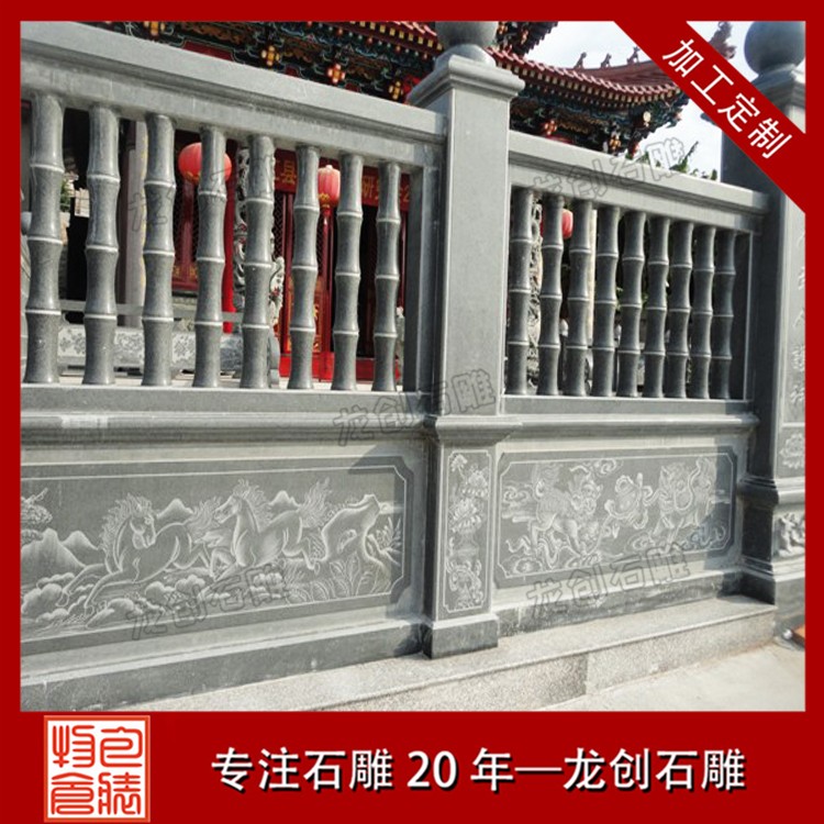3.穩定牢固:石雕護欄采用天然石材制作,質地堅硬,結構穩定,能夠承受較大的壓力和沖擊,確保使用過程中的安全性和穩定性。