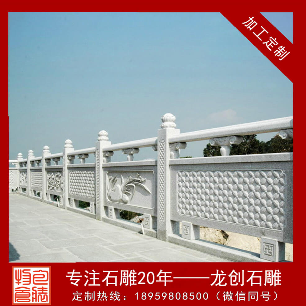 龍創石雕欄桿廠家雕提示您:定做過程中注意施工安全,石雕欄桿請注意勿大力磕碰。石雕欄桿由于是石頭雕琢而成的,所以不易斷裂,一般以在室外使用居多。在室內極少使用石雕欄桿,比如那些展示廳會放置些許石雕欄桿,室內欄桿的保養維護只需要用雞毛撣子略微清理下塵埃即可,而在室外的石雕欄桿由于長時間受到風吹雨打,所以清理需要的時間比較多,能夠用抹布擦洗欄桿外表,那些難以擦洗潔凈的地方能夠使用專用的石材清洗劑清洗,然后再用專業養護石材的產品進行保養,這樣子戶外石雕欄桿才能長時間保持光鮮亮麗。