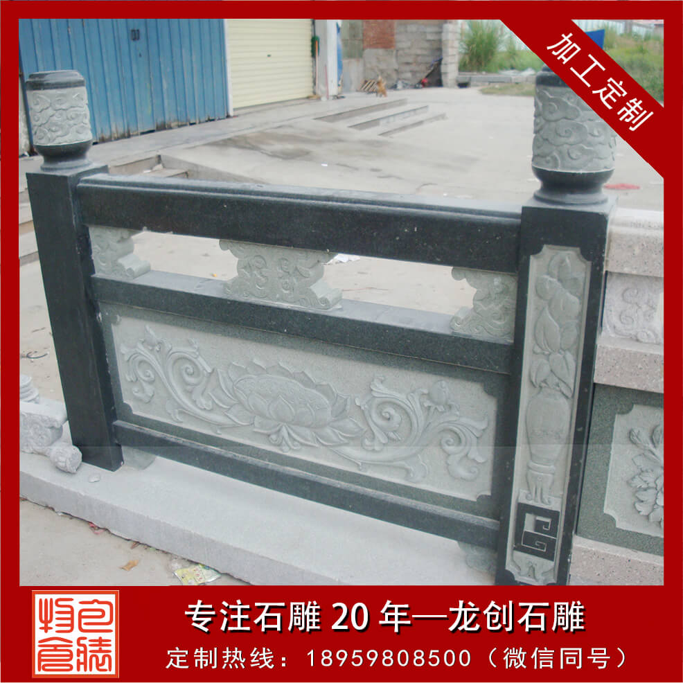 石頭欄桿一般出現(xiàn)在古建筑大殿周圍、橋面、路面上,起到保護行人安全外,石頭欄桿還可裝飾環(huán)境,又能豐富人們的活,陶冶人的情操,給人以美的享受。石頭欄桿、石頭欄桿的構成石頭欄桿有柱頭、立柱、扶手、花托、欄板、地鋪幾部分組成。透空的帶花格或圖案的實心欄桿,也有實心的欄板局部透空或全部不透空的欄桿。
