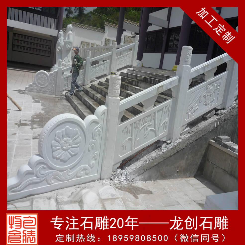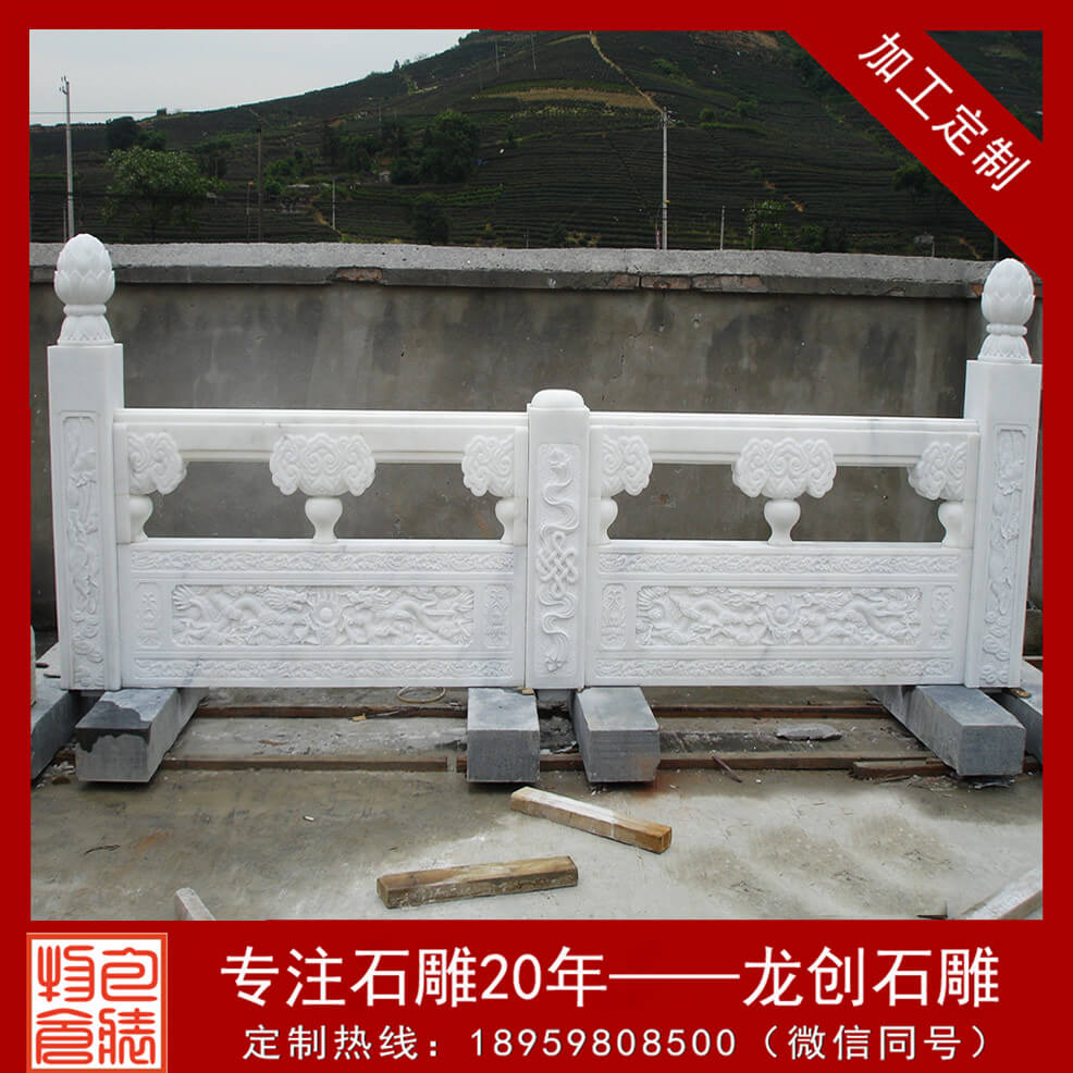 石雕欄桿有著美觀、時尚、環保、抗老化、不變形的功能長處,可廣泛用于市政、水利、公園、交通路途、橋梁欄桿等護欄工程。石雕欄桿一般出現在古建筑大殿周圍、橋面、路面上,起到維護行人安全外,石雕欄桿還可裝修環境,又能豐富人們的活,熏陶人的情趣,給人以美的享受。漢白玉石雕欄桿的構成石雕欄桿有柱頭、立柱、扶手、花托、欄板、地鋪幾部分組成。透空的帶花格或圖畫的實心欄桿,也有實心的欄板部分透空或悉數不透空的欄桿。漢白玉石雕欄桿圖片是欄桿的首要靈魂,人們一眼就是會看到欄板上的圖畫,由于欄板在欄桿上占有的面積大。惠安石雕欄桿欄板上雕琢圖畫一般以浮雕雕琢工藝為主,首要雕琢圖畫有植物,一般是蓮花、菊花、牡丹等,還有歲寒三友:梅、蘭、竹,在欄板上也有動物,如雕琢揮灑自如的圖畫,雕琢飛鳥以及其他心愛的小動物,有的欄桿欄板上會浮雕人物像或者是人物故事及我國神話傳說等,這是歸于比較復雜的浮雕雕琢,簡略樣式的欄板會雕琢花鳥圖畫,簡略又有我國特色。漢白玉石雕欄桿的價格一直是客戶最關注的一個話題,不同的產品有不同的價格。可是石雕欄桿的特殊性,又不能像其它的產品一樣,即可給出報價,精確的報價要等到多次核算之后才能給出報價。通常來講,影響漢白玉石雕欄桿價格的因素首要有以下幾方面。