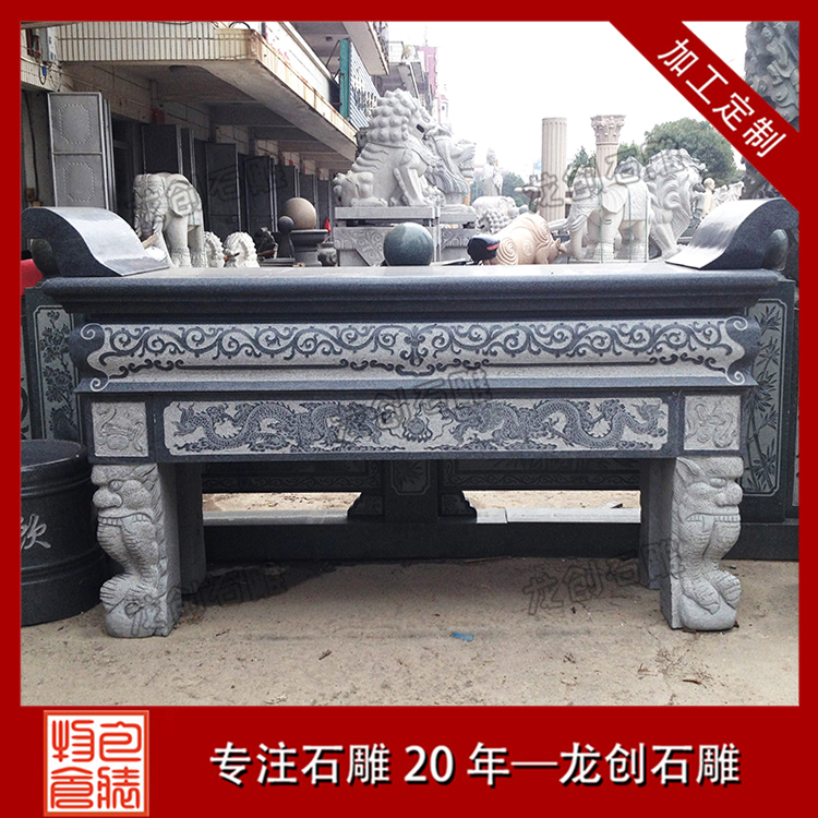 惠安石雕在世界上很多地方都享有一定的盛譽,這與它歷史文化的沉淀及越來越精進的工藝技術有很大關系。石雕供桌為佛教寺廟常見的石雕擺件,供桌的四周采用圓雕浮雕工藝手法雕刻出立體感很強的花紋圖案,具有一定的觀賞價值和很強的實用價值。石雕供桌批發可以選擇惠安石雕供桌的制作廠家——龍創石雕。