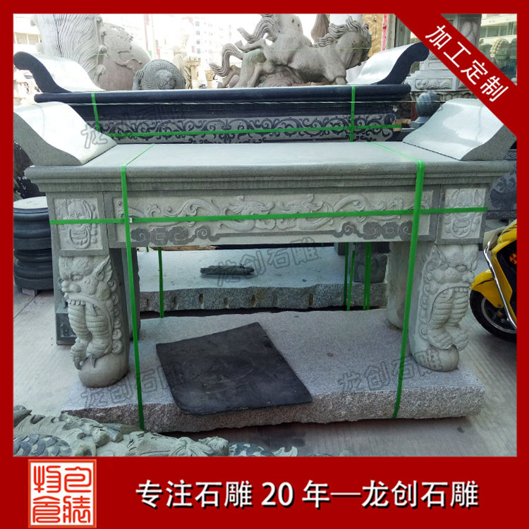 石雕供桌是祭祀時擺設香爐和供品的,故名供桌戓貢品桌。石雕供桌更是以質樸自然,美觀大方,精美的雕刻深得人心。人們一向有自己的信仰,供奉觀音菩薩不僅是對心靈的一種寄托,也是為了能夠有神靈保佑從而能夠趨吉避兇,佛桌的擺向不能夠跟房屋的的坐向相反,例如坐東向西的陽宅就避忌把佛位放置為坐西,而佛像背后好是有靠墻面,兩旁有抱能藏風聚氣,也是石雕佛桌擺放佳的位置。
