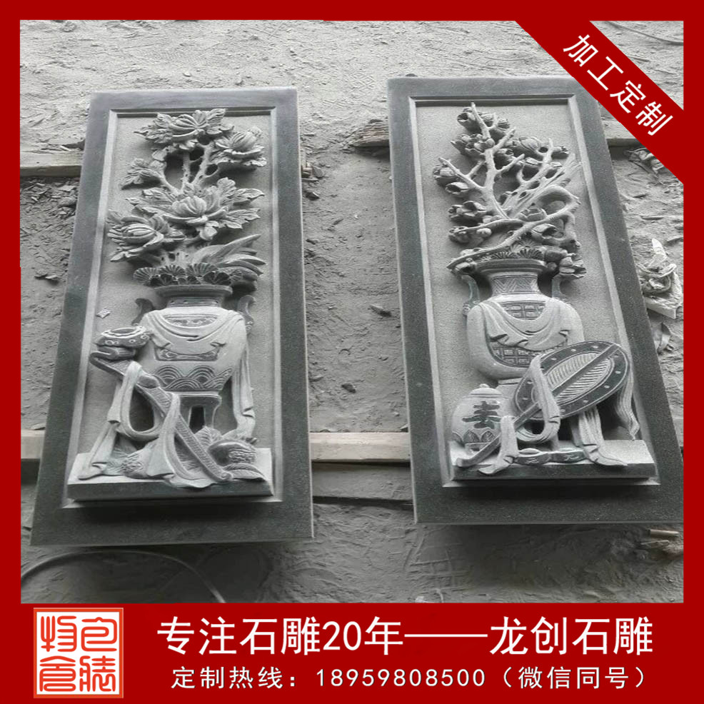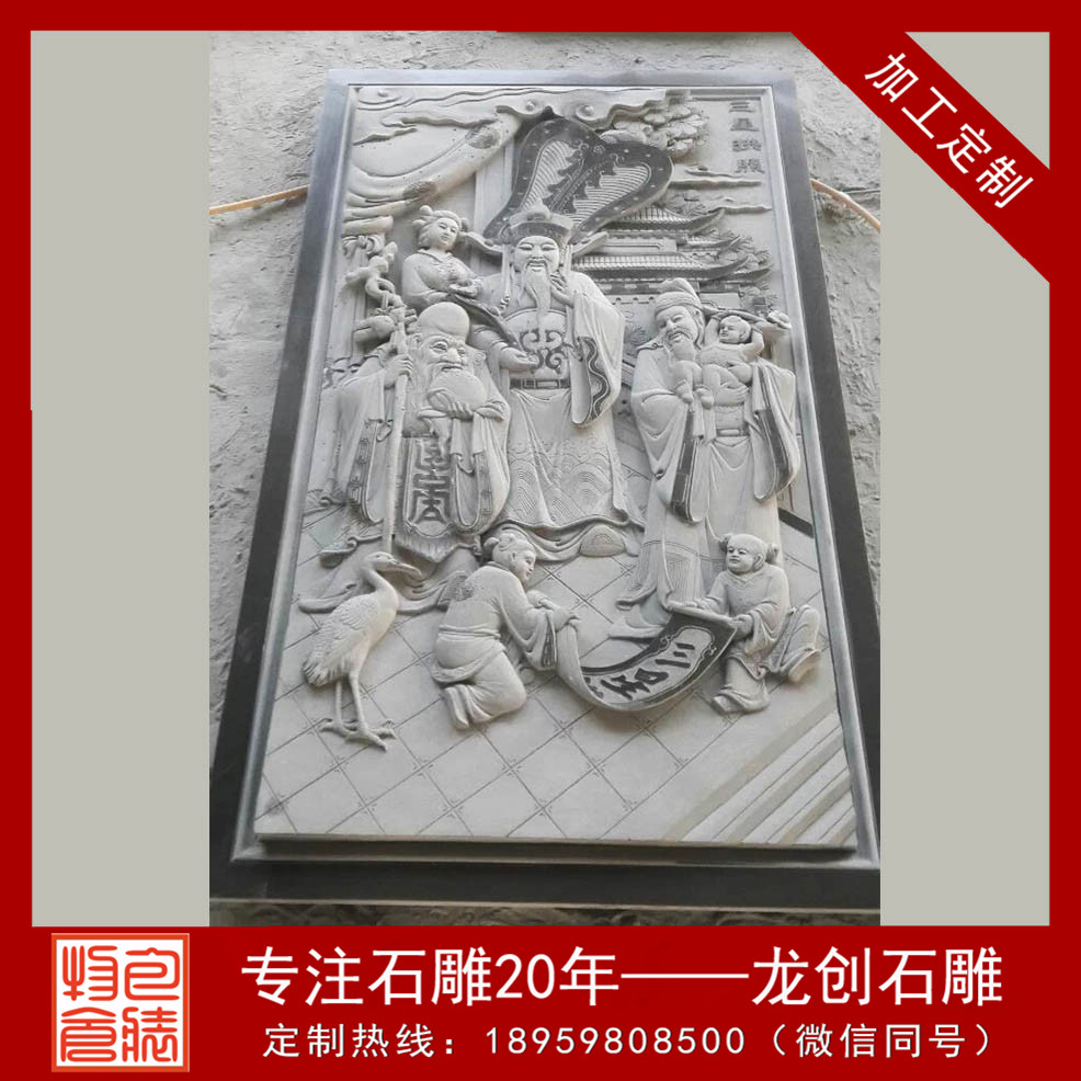 石雕浮雕壁畫(huà)在寺廟宗祠中占了越來(lái)越重要的地位。寺廟外墻浮雕在內(nèi)容、形式和材質(zhì)上與圓雕一樣豐富多彩。外墻浮雕常見(jiàn)的材料有青石、花崗巖、白麻、芝麻黑、羅源青、古田青等等。室內(nèi)浮雕多半用于大幅面的背景墻面,很多設(shè)計(jì)師利用浮雕的立體視覺(jué)效果,展現(xiàn)了很強(qiáng)的動(dòng)感和張力。