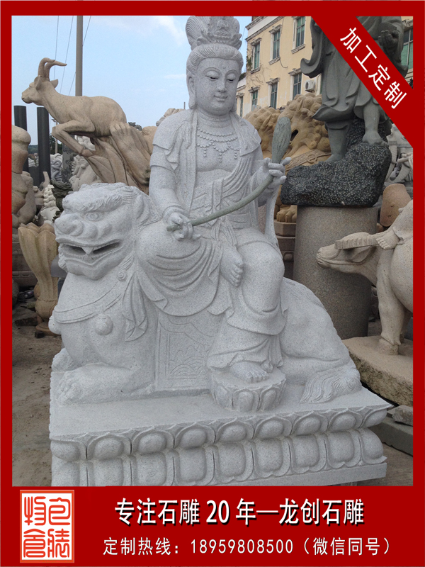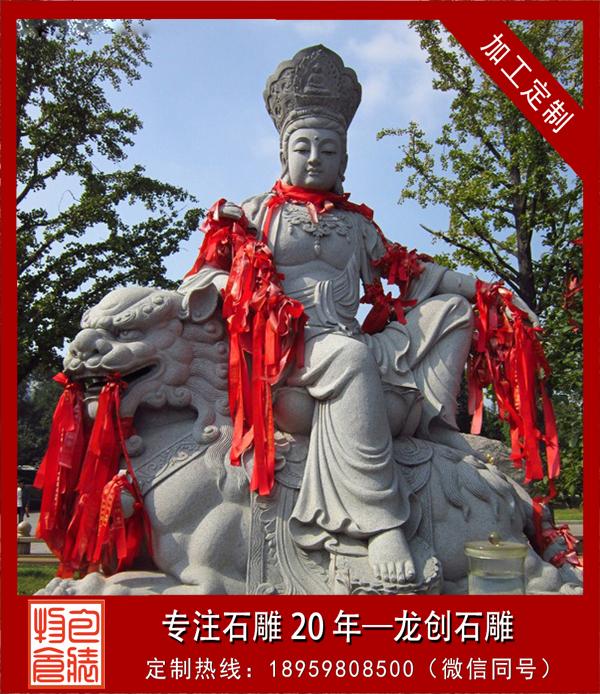 一般稱文殊師利菩薩,與普賢菩薩同為釋迦佛之脅侍,分別表示佛智、佛慧之別德。所乘之獅子,象征其威猛。