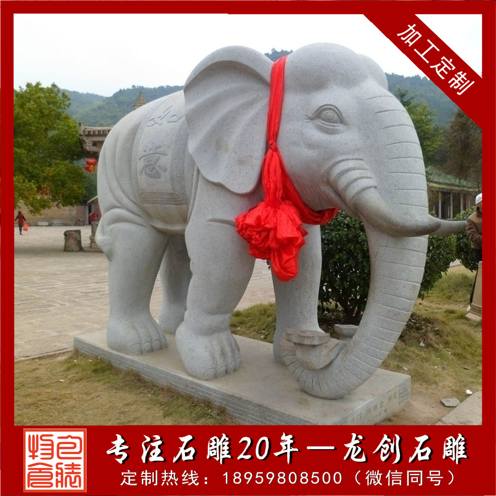 在家中擺放石雕象并不是什么時候都可以的事情,也有一個日期時間上的要求,其本身是一種風水動物,根據不同地區的風俗要求,在擺放上也都會有不同的要求。在實際擺放的時候就要先做好整體考慮,根據當地的風俗習慣等來對比,選擇到合適的吉日擺放,根據一些地域的特殊要求,擺放也都會需要挑選合適時期下圖是我們嘉祥縣長城石雕廠制作的招財石雕大象,石材芝麻白花崗巖,大象背上托的是元寶,適合擺放在公司、家庭、別墅大門口,我們還制作過寺院大象,他雕刻圖案一般是寶相紋,大象背上馱著蓮花、經書等佛教寶物。