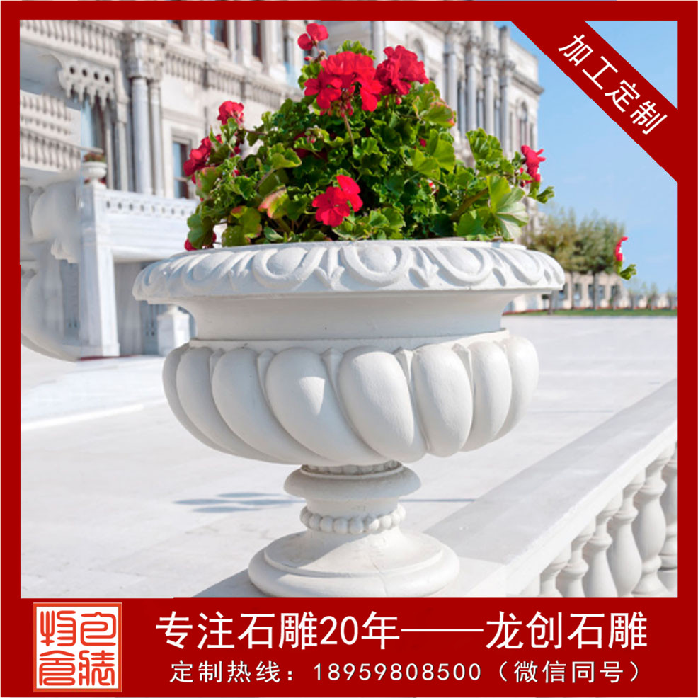 石雕歐式花盆的分類;近年來,一些大型廣場、繁華鬧市等特殊地段,由于施行黃土不露天工程,因而這類地段的綠化美化大多經過運用各類石雕歐式花盆來完成。在街頭,三三兩兩的石雕歐式花盆,一字排開,石雕歐式花盆內,各色的時令花卉栽種其間,經過定期地澆水、施肥、養護后,便收到了不錯的景觀效果。街頭擺花的盛行,讓消費石雕歐式花盆的廠家有了用武之地。與以往陶盆、瓷盆、漢白玉花槽不同的是,往常用各種石材制造而成的石雕歐式花盆在市場上占領上風。