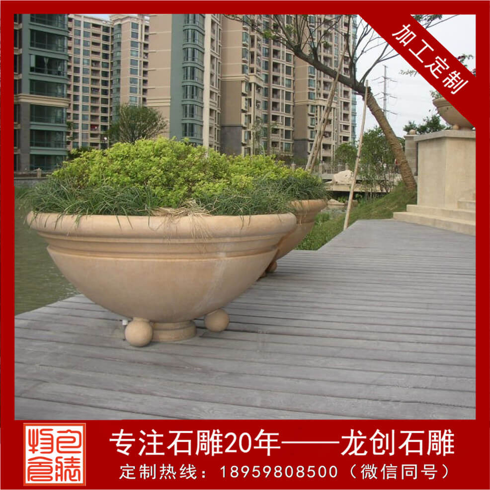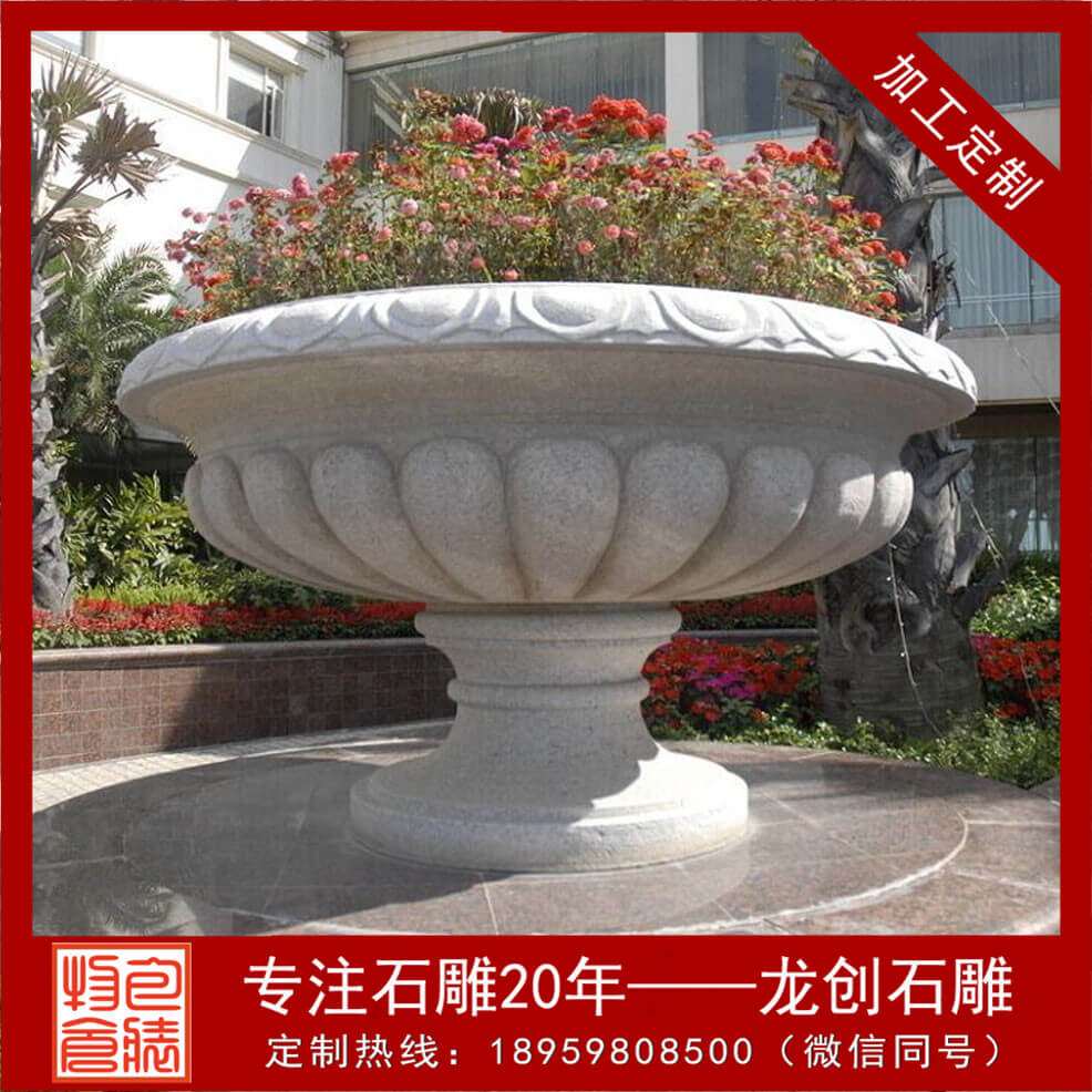 石雕花盆質地堅硬細密、強度高、抗風化、耐腐蝕、耐磨損、吸水性低,美麗的色澤還能保存百年以上,色彩美觀。格調高雅,花色繁多,剛性好,耐磨性強,溫度變形小。保養方便簡單,運用壽命長。