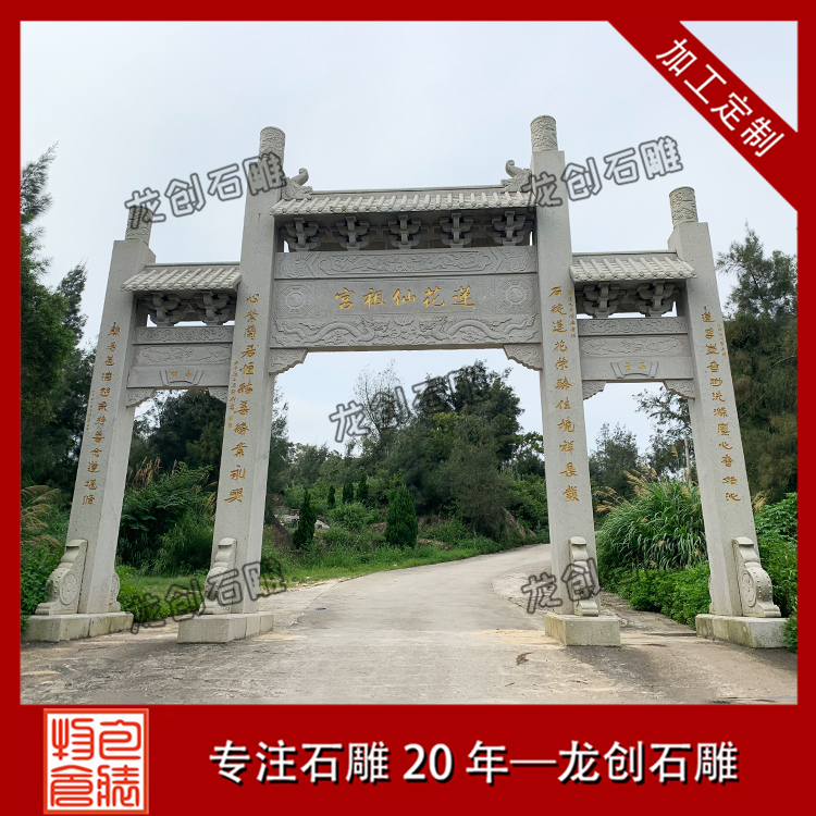 花崗巖石牌樓廠家龍創石雕生產的石牌樓古樸典雅、新穎美觀,無論人物或動物都栩栩如生,成為提升形象、營造古典文化的一大特色。我廠專業制作設計各種石牌樓,青石牌樓定制,在石雕行業中有著專業的技術團隊,可以為每一個地方設計出具有他們當地文化的石牌樓,龍創石雕全體員工熱誠歡迎您前來參觀。