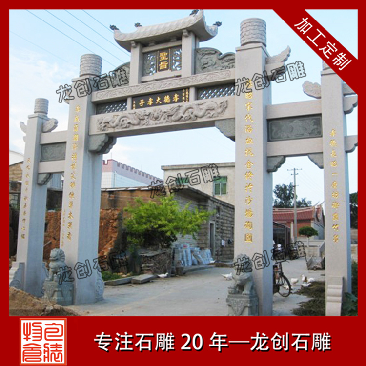 石牌樓是我國(guó)建筑中的藝術(shù)代表,集中展示了我國(guó)雕刻文化,也能夠探索到不同歷史時(shí)期的故事。石牌樓如今建造應(yīng)用多,尤其在新農(nóng)村村口石牌樓設(shè)計(jì)制作及選購(gòu)中,因?yàn)樾藿ㄊ茦鞘菫榱苏蔑@新農(nóng)村面貌,不少新農(nóng)村建設(shè)也都會(huì)作為重點(diǎn)設(shè)計(jì)考慮。那么新農(nóng)村村口石牌樓設(shè)計(jì)制作及選購(gòu)有哪些注意事項(xiàng)? 下面由村口石牌樓廠家,龍創(chuàng)石雕為大家介紹。