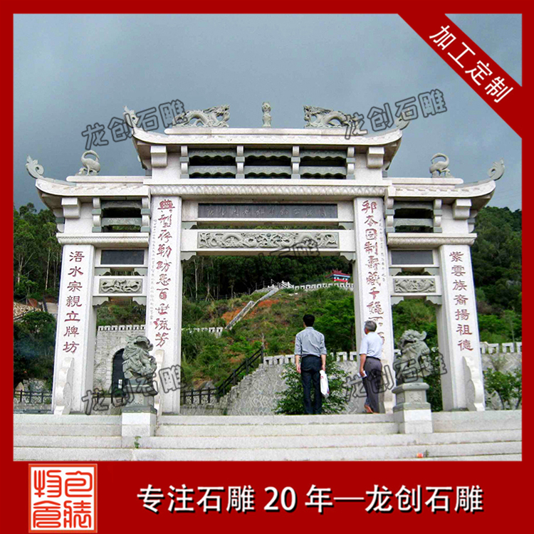龍創石雕,一家石雕牌坊加工廠家,有著二十多年石雕經驗,生產的石雕牌坊,有著精致細膩的雕工,以優良的口碑走遍天下。歡迎新老顧客前來選購。