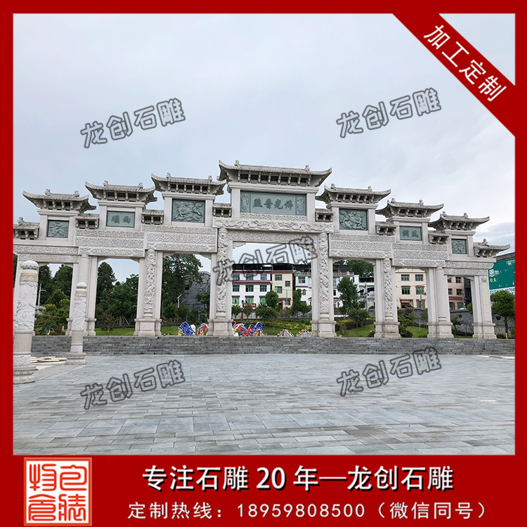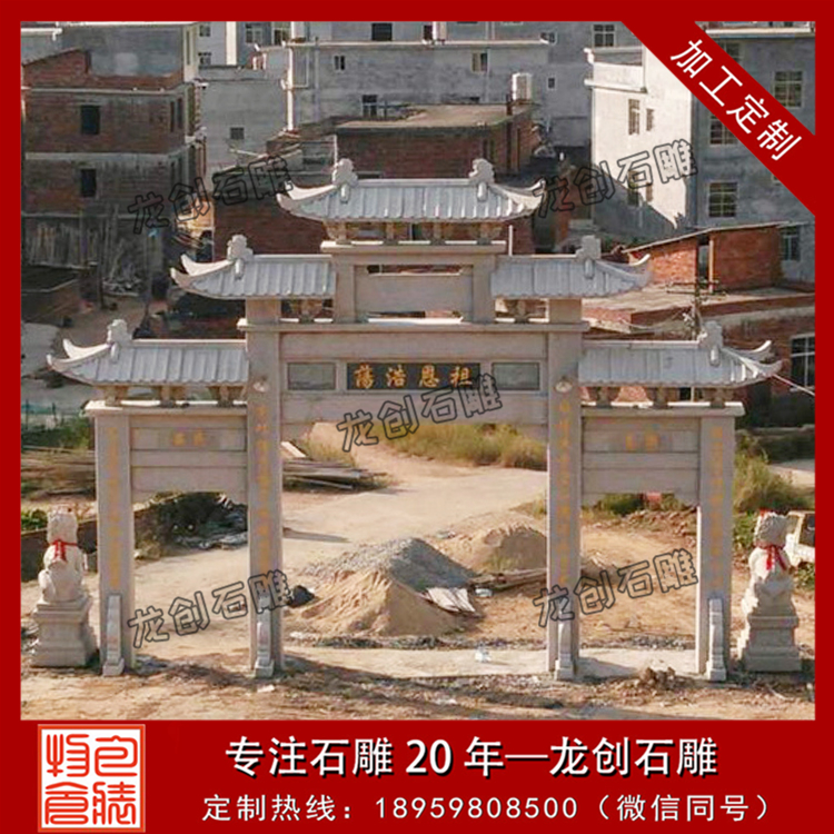 2、現代石雕牌坊設計要注意和實地環境的結合。現代化的石雕牌坊建筑可以是在休閑區域,也可以是在商業廣場,還可以在景區內建造,常見的就是在仿古街的入口處修建石雕牌坊,既能夠體現古色韻味又能夠吸引游人的關注。如村莊牌坊的修建,就要和村莊的風俗文化相結合,只有這樣才能和當地環境文化融為一體。無論是在哪里進行建造石雕牌坊,一定好和當地的環境進行有機的結合,這樣才能讓建筑和環境融為一體,才能讓建筑為周圍的景色帶來亮點。
