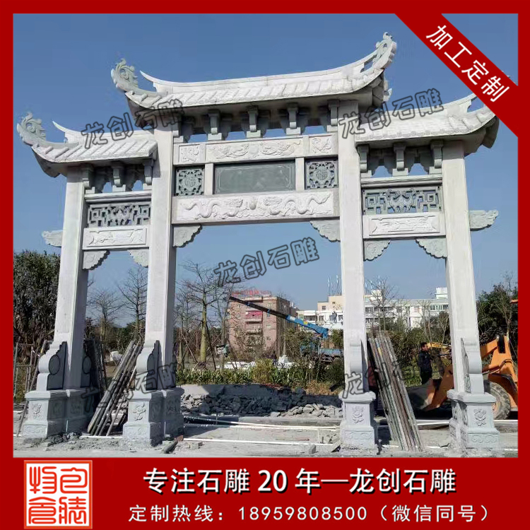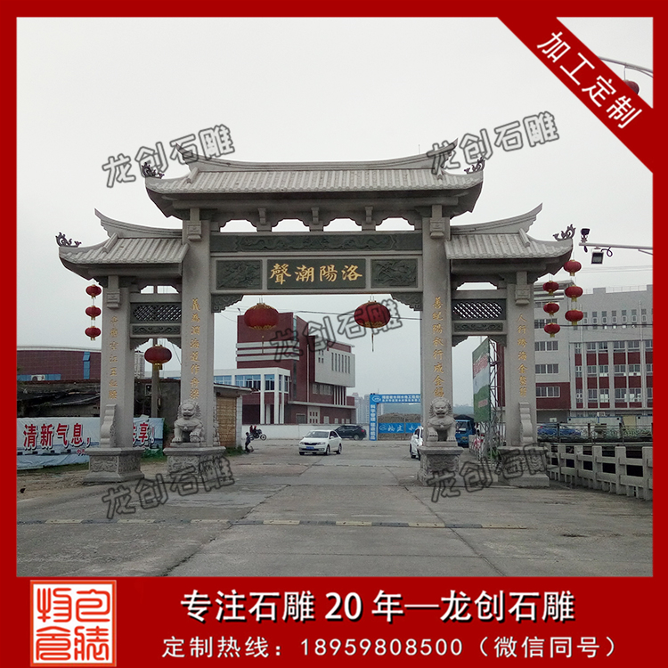 龍創石雕,專業的青石牌坊制作廠家,現有出售青石三門三樓、青石三門五樓、三門七樓等樣式的石牌坊,同是也承接來圖來樣定制,歡迎來電咨詢。