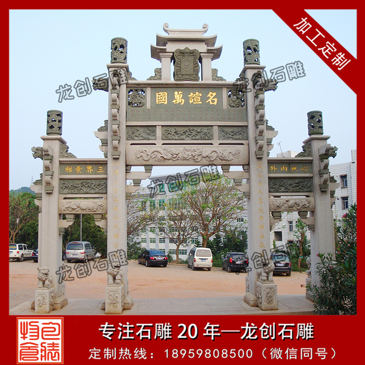 三門石牌坊是比較常見的石雕牌坊樣式,其中大部分石雕牌坊安裝都是三門石牌坊。三門石雕牌坊加工效果好氣派,石雕牌坊常用的石頭有青石,花崗巖和漢白玉。三門三樓的8米青石牌坊一般需要10萬左右。花崗巖石雕牌坊施工安裝需要8萬元左右,浮雕加工的增加也在增加。浮雕又分為線雕,浮雕和高浮雕。高浮雕的深度超過5厘米。高浮雕的制作難度大,要求雕刻家付出昂貴的價格和報酬。加工一座村莊三門石牌坊要多少錢?在所設置的石牌坊中。到了現代之后,牌樓的用途就更加豐富了,它會出現在祠堂,寺觀,宮苑等地,所以在旅游時,我們經常能在著名的經典看見類似的建筑。牌樓的建筑是非常有特點的,它就像高高聳立的樓頂,氣勢也相當宏偉,所以成為了很多朋友喜愛的古典建筑。